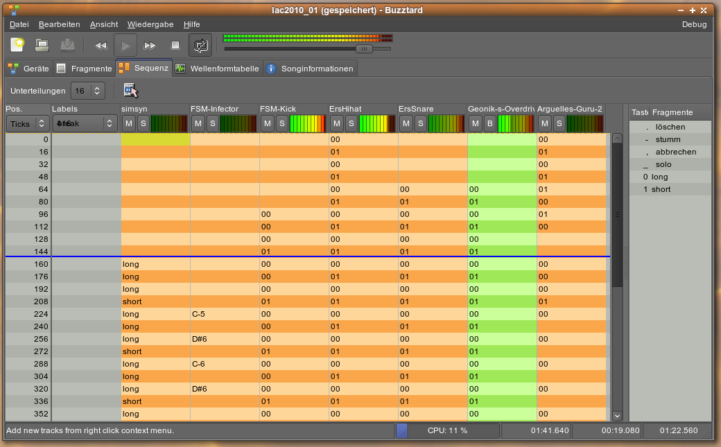 Buzztrax aims to be a music studio that allows one to compose songs using only a computer with a soundcard. If you’ve used tracker programs like FastTracker, Impulse Tracker, or the original AMIGA SoundTracker, that will give you an idea of how one can sequence music in Buzztrax.